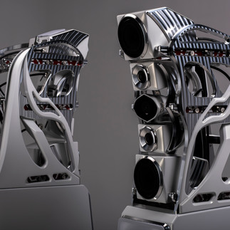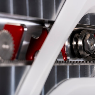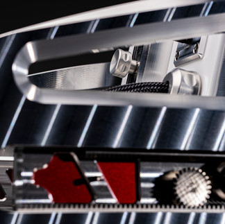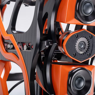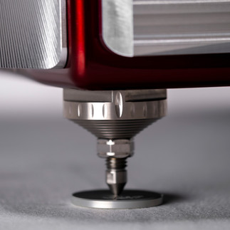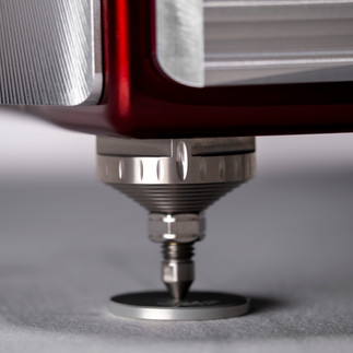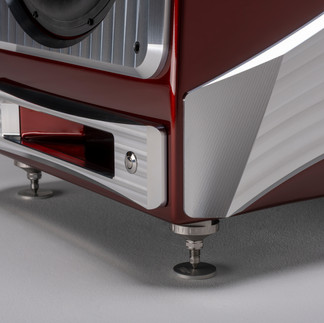 A new V-Material formulation is used at the base of the enclosure to enhance vibration control with the Acoustic Diodes. The gantry is isolated using V-Material and features a sculpted, skeletonized design blending H-Material and machined aluminum.