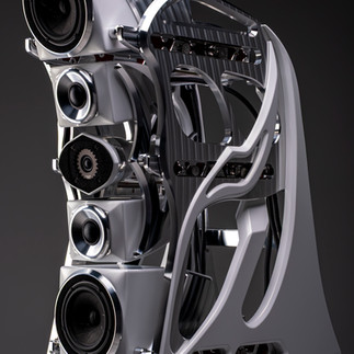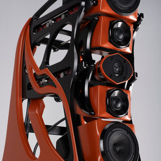 Rear-Firing Tweeter / RFT:Autobiography incorporates an inverted dome rear-firing tweeter (RFT) designed to enhance spatial depth, ambient retrieval, and harmonic decay. This driver is constructed using aerospace-grade unidirectional spread carbon fiber, selected for its exceptional stiffness, predictability, and consistency. The diaphragm employs a variable thickness profile that minimizes inertia while maximizing structural integrity.