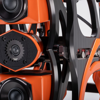 This RFT is a wide-dispersion design, optimized to reproduce ambient information without drawing attention to itself. Its operating range spans from 6 kHz to 22 kHz. An integrated attenuation control allows adjustment from 0 dB to -40 dB, with the maximum setting calibrated to begin at -7 dB at 10 kHz relative to the FFT at typical listening distances. This flexibility enables precise tailoring to room acoustics and listener preference, providing subtle reinforcement of spatial cues and reverberant energy.